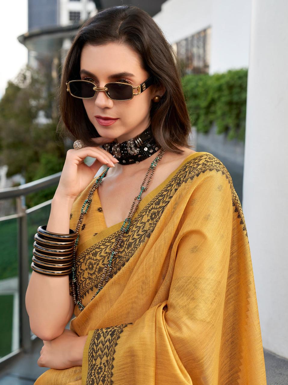 Be the first to review “Canary Yellow Linen Tissue Office Wear Saree”