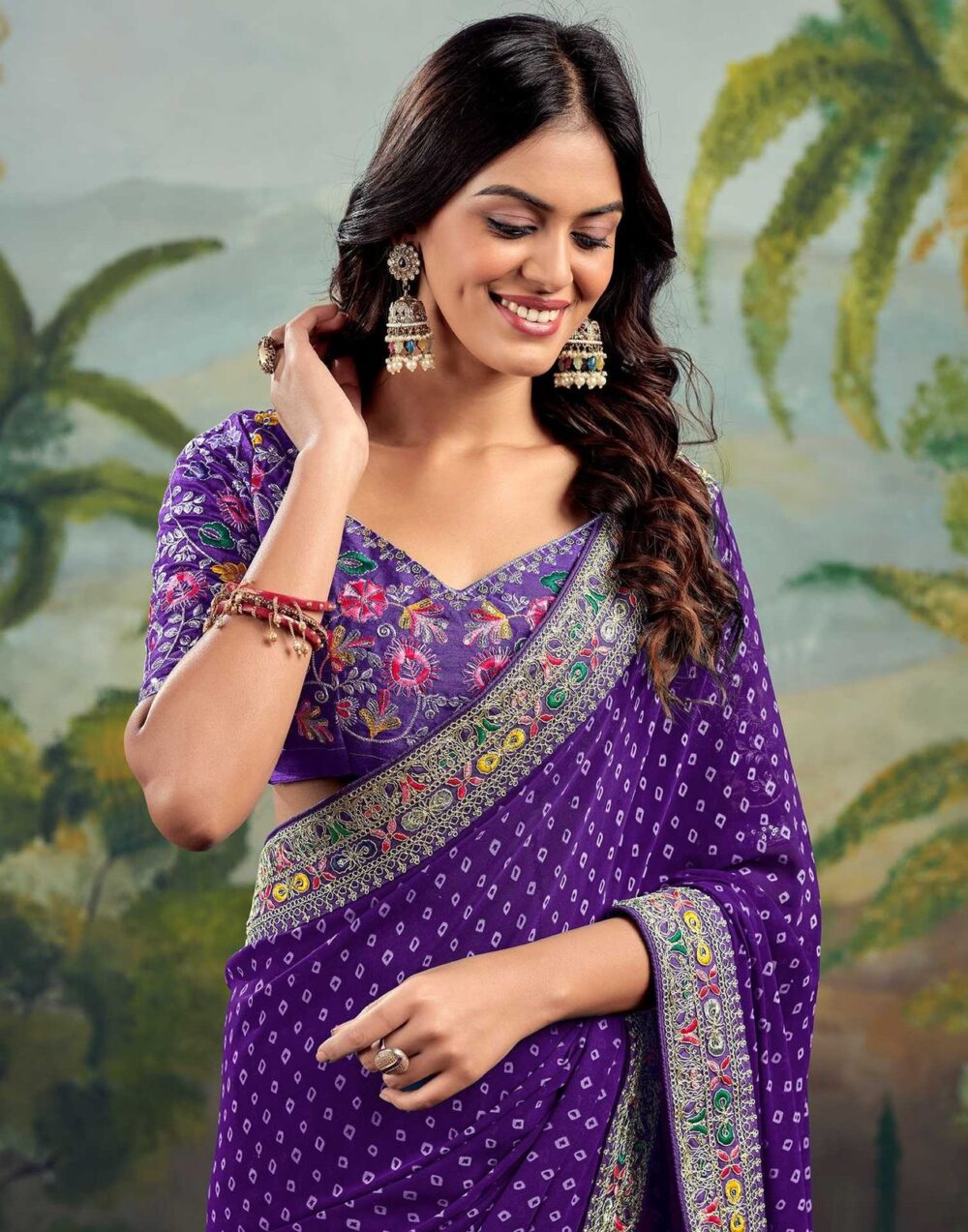 Any questions related to Dark Purple Bandhani Georgette Saree?